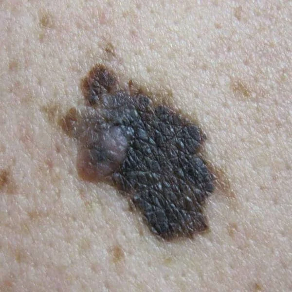 Een gezonde moedervlek is meestal rond of ovaal. Bij een melanoom ontstaat vaak een vorm die niet gelijkmatig is verdeeld. Let op: