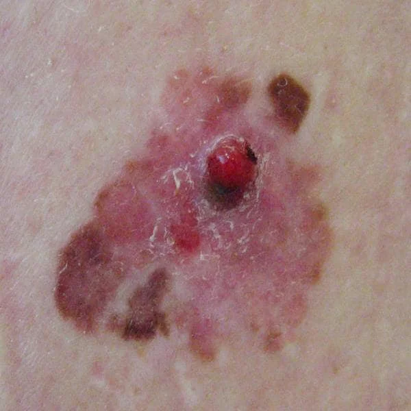 Een melanoom bestaat soms uit meerdere kleuren. Let op: